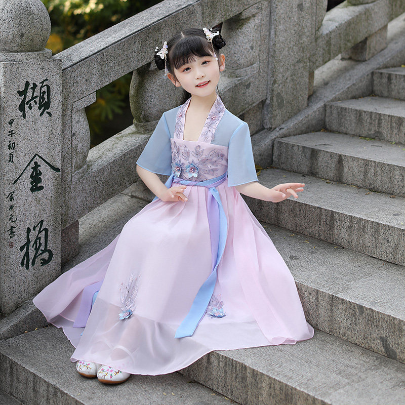 Ханьфу, детская летняя одежда, платье, наряд маленькой принцессы, летняя длинная юбка для девочек