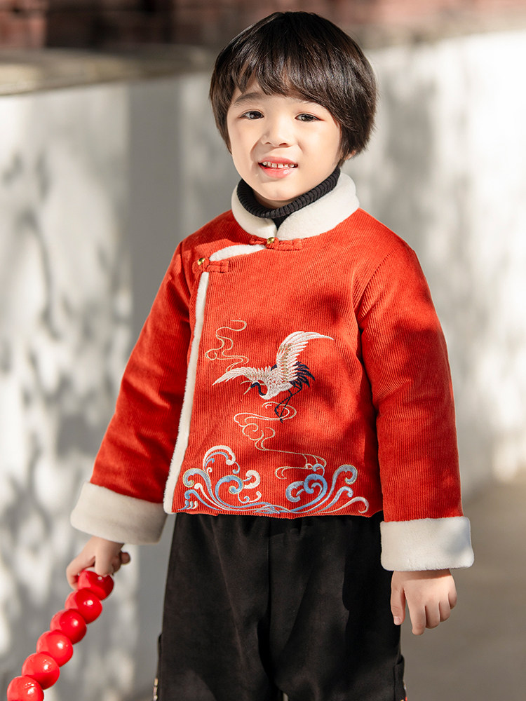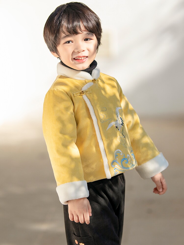Ханьфу, детский костюм мальчика цветочника, пуховик, удерживающая тепло китайская вышивка для мальчиков, с вышивкой, китайский стиль