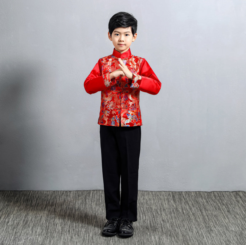 Детское красное платье, костюм для мальчиков, китайский стиль