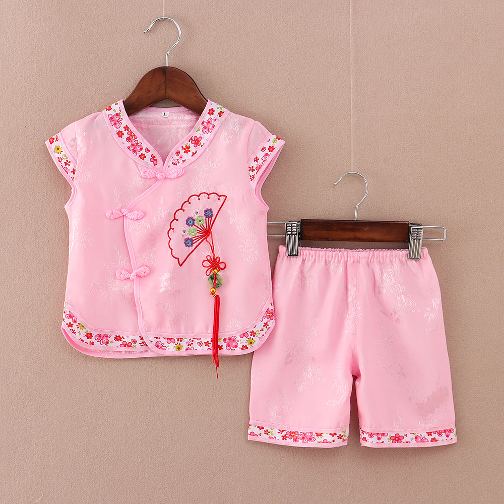 Комплект для девочек, тонкое ретро летнее платье для раннего возраста, короткий рукав, наряд на выход, цветочный принт, китайский стиль, детская одежда