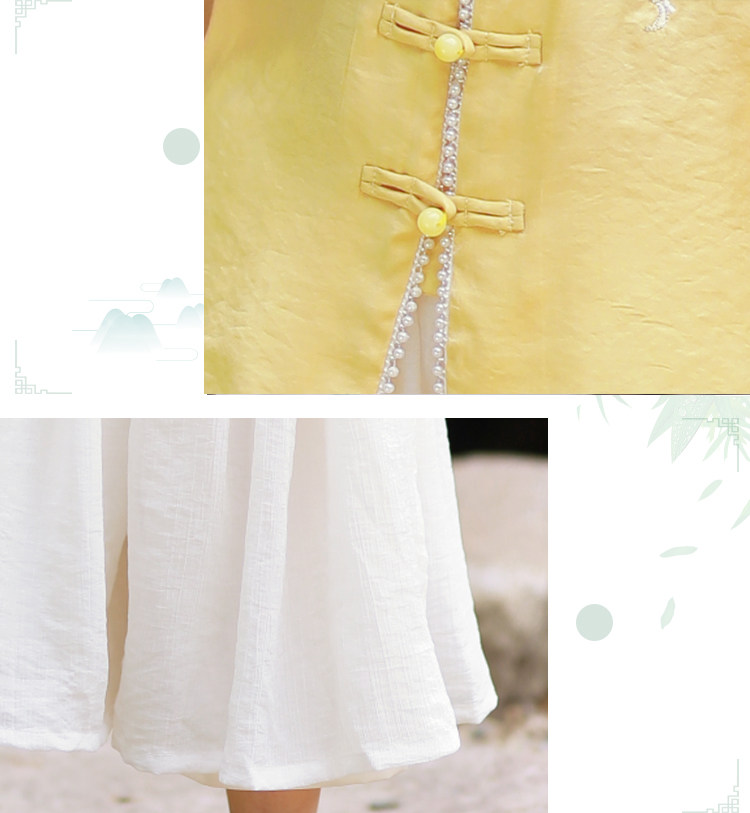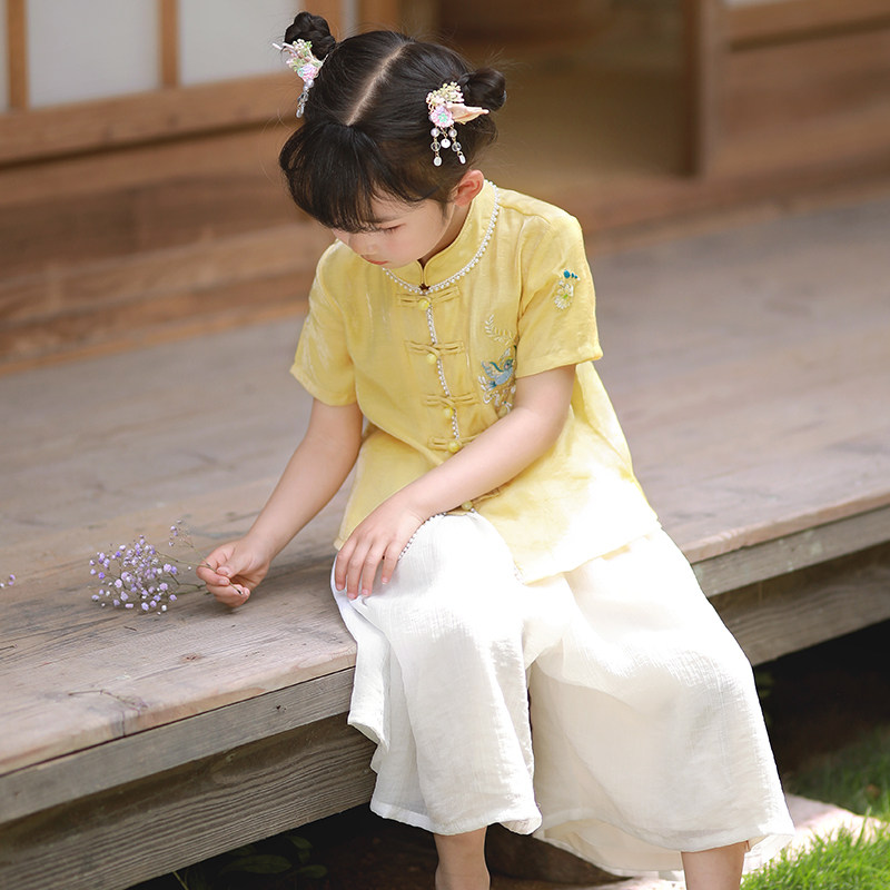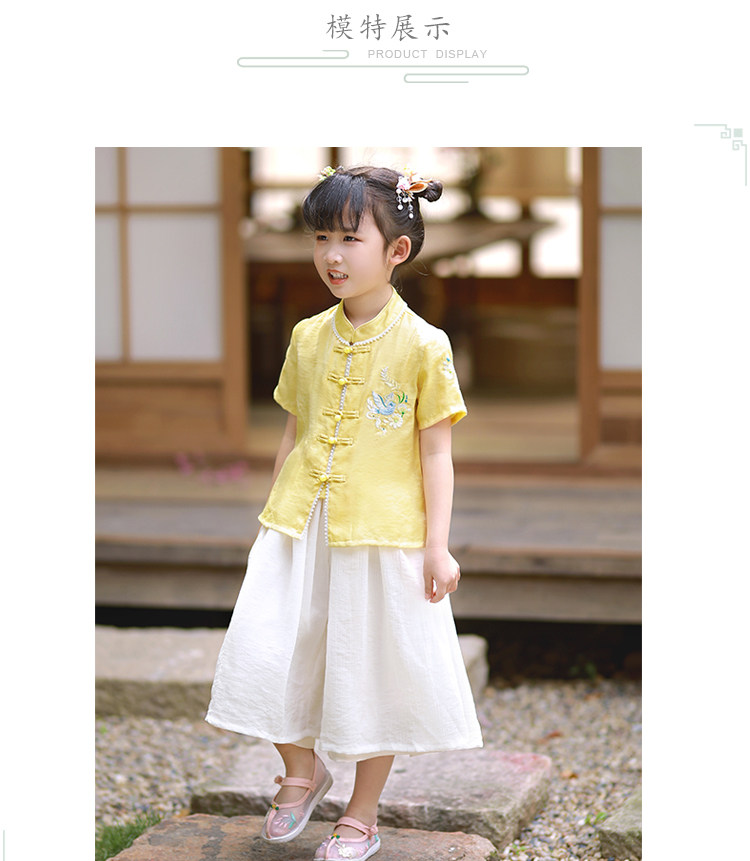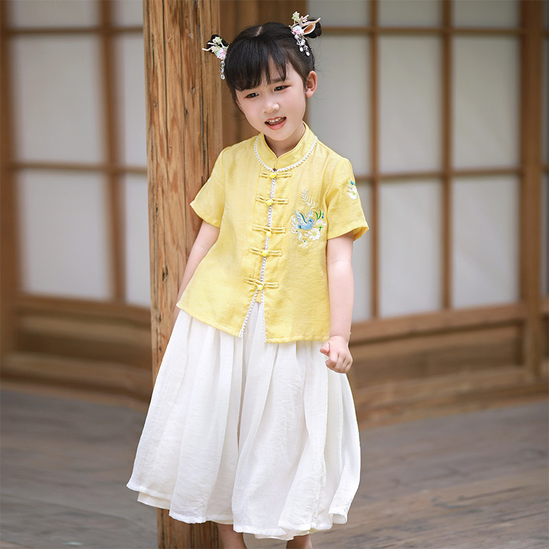 贝点衣 Оригинальная летняя детская юбка, детский желтый комплект, ханьфу, китайский стиль