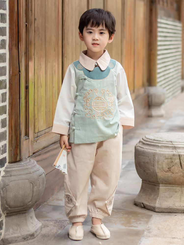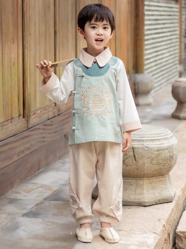 Ханьфу, осенний детский костюм мальчика цветочника, этнический комплект, лонгслив, китайский стиль, этнический стиль