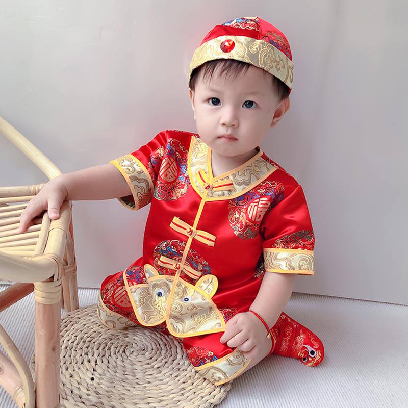 Детский костюм мальчика цветочника для новорожденных, ретро детское ханьфу, наряд на выход, китайский стиль, детская одежда