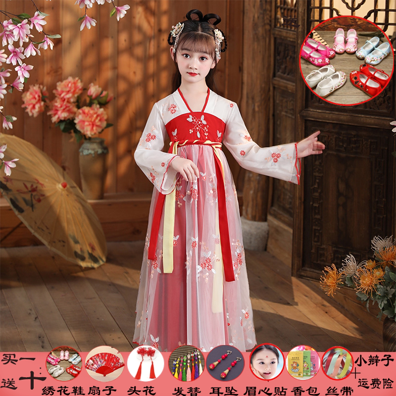 Детское ханьфу, платье, красный осенний лонгслив, китайский стиль, подходит для подростков