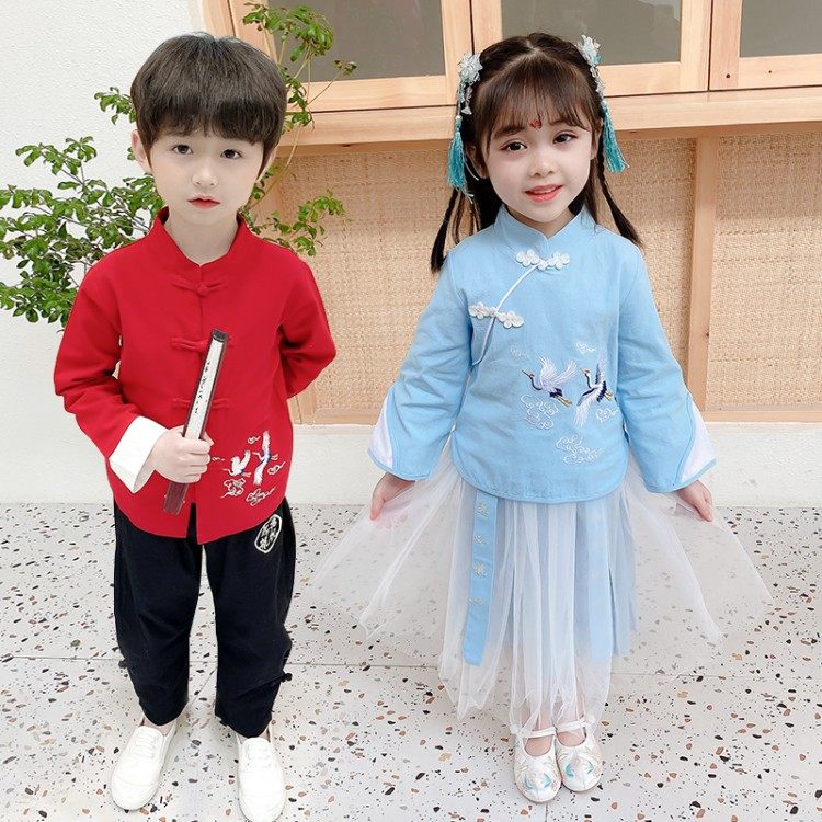 Этническое ханьфу для раннего возраста, костюм мальчика цветочника, китайский стиль
