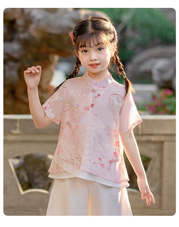 Летнее тонкое ханьфу, детская летняя одежда, шифоновый комплект, китайский стиль