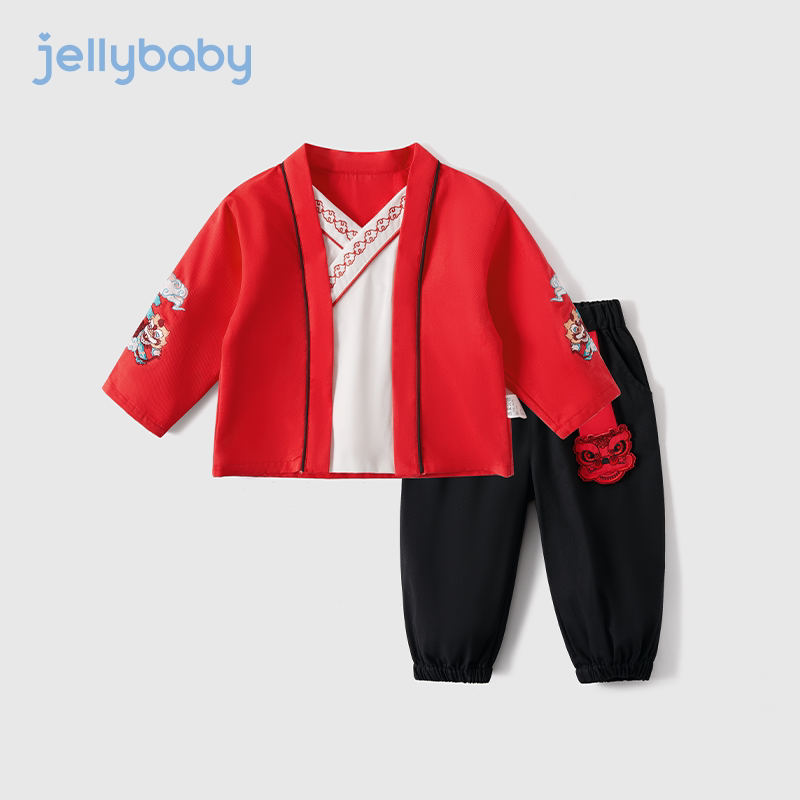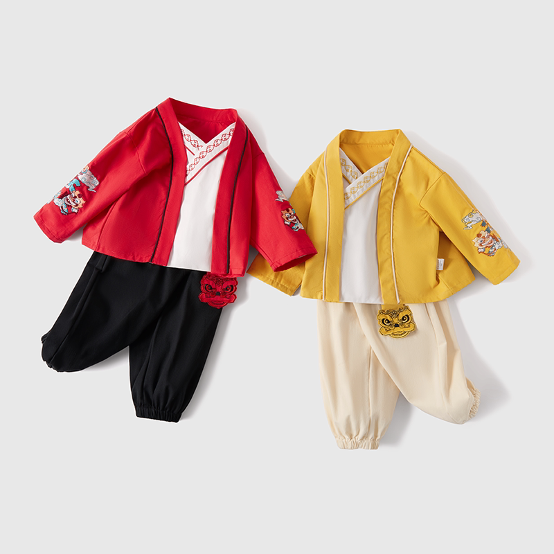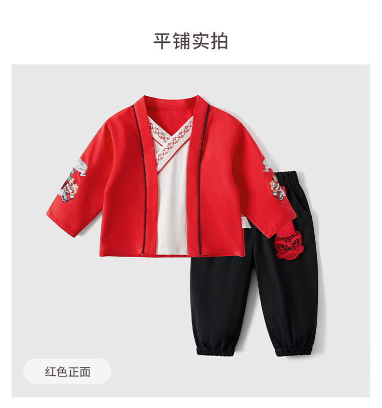 Красный детский комплект для мальчиков, детское ханьфу, китайский стиль, детская одежда, 5 лет