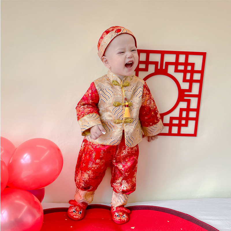 Платье, детская одежда для мальчика, детский комбинезон, комплект для мальчиков, наряд на выход, китайский стиль