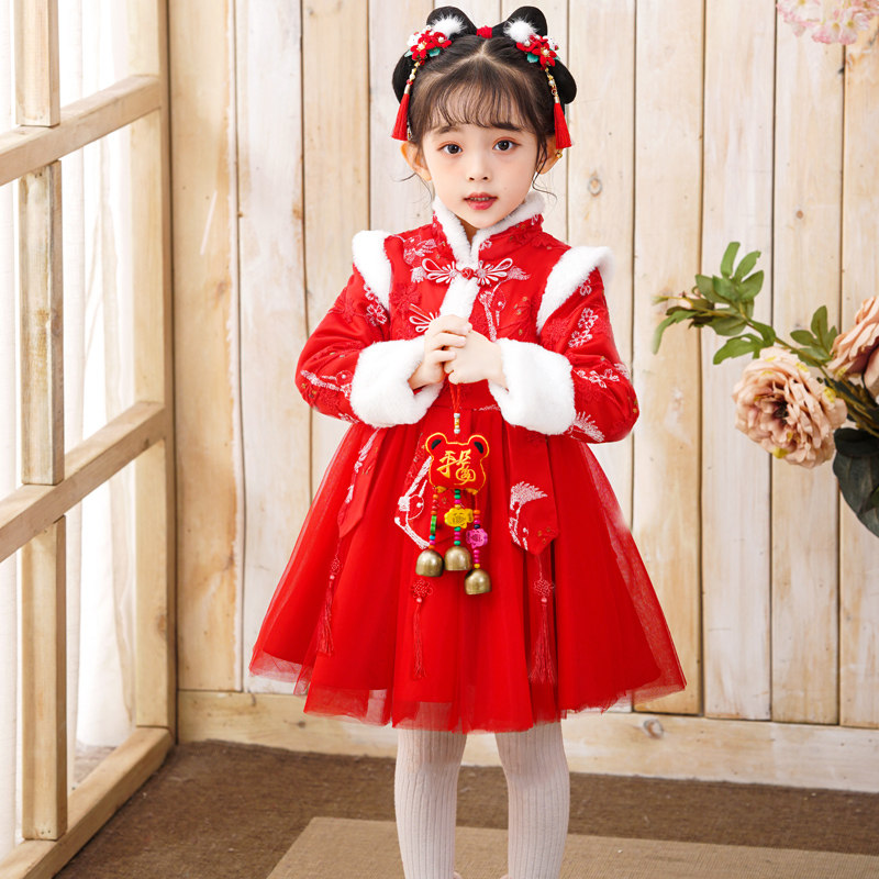 Зимнее детское праздничнное ханьфу для девочек, год кролика