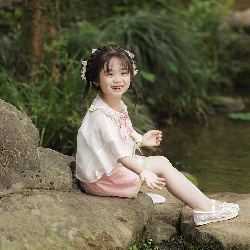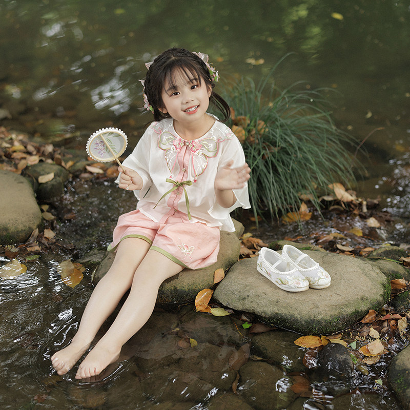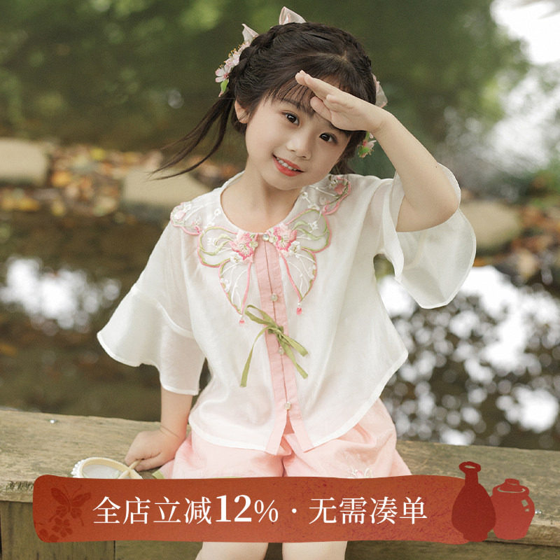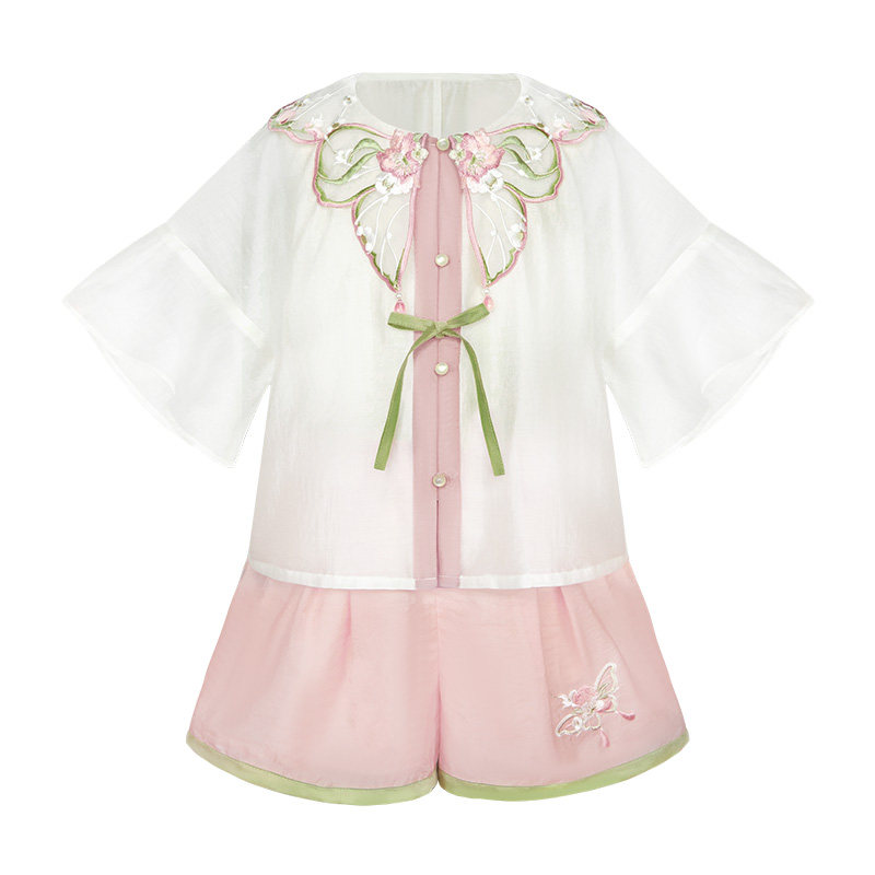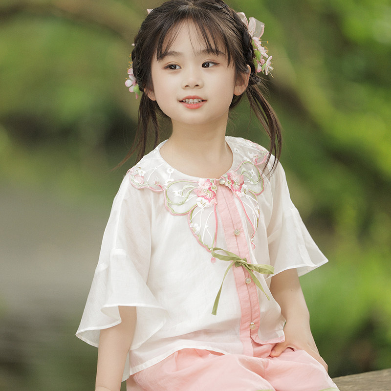 十三余 Летние прохладные детские штаны с круглым воротником, комплект, с вышивкой
