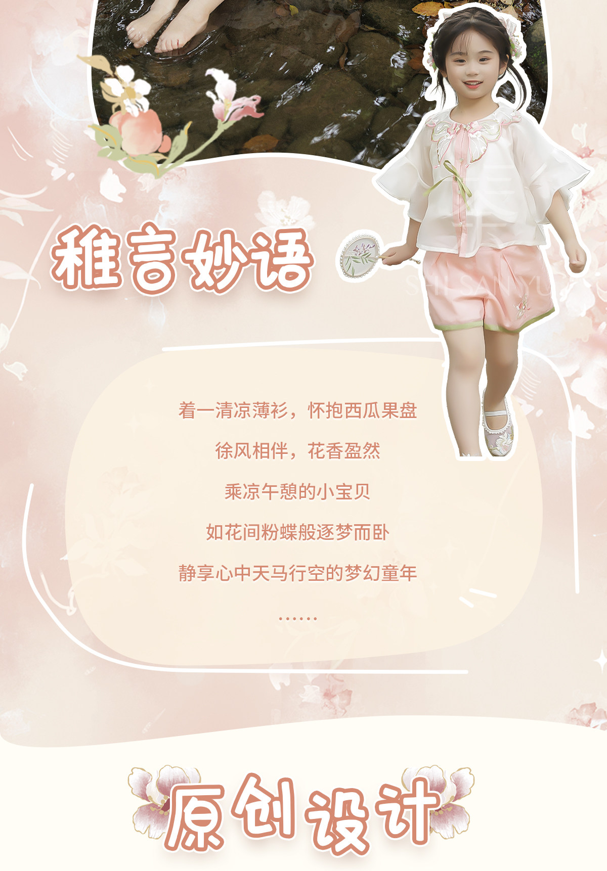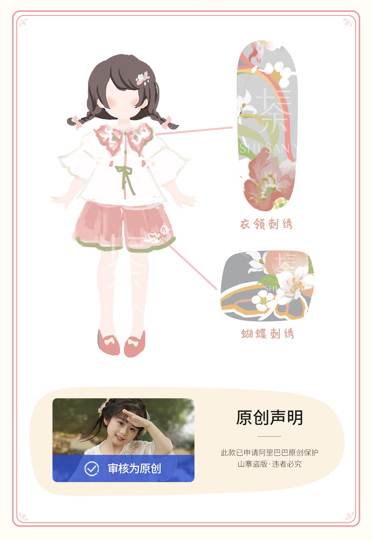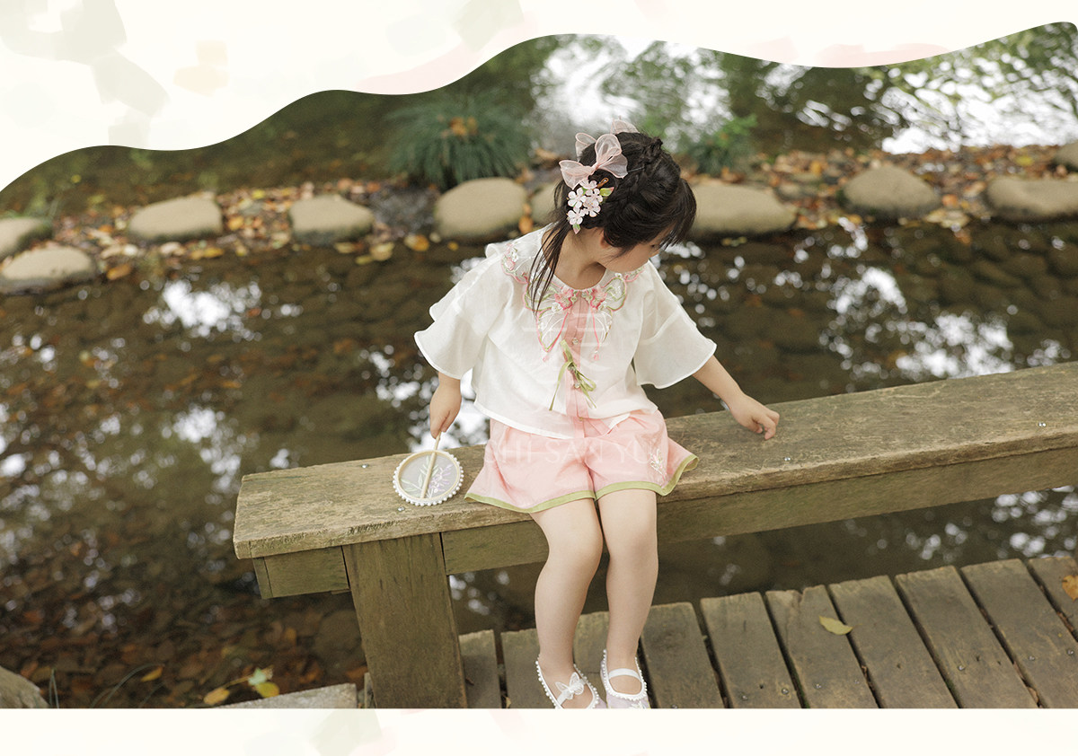 十三余 Летние прохладные детские штаны с круглым воротником, комплект, с вышивкой