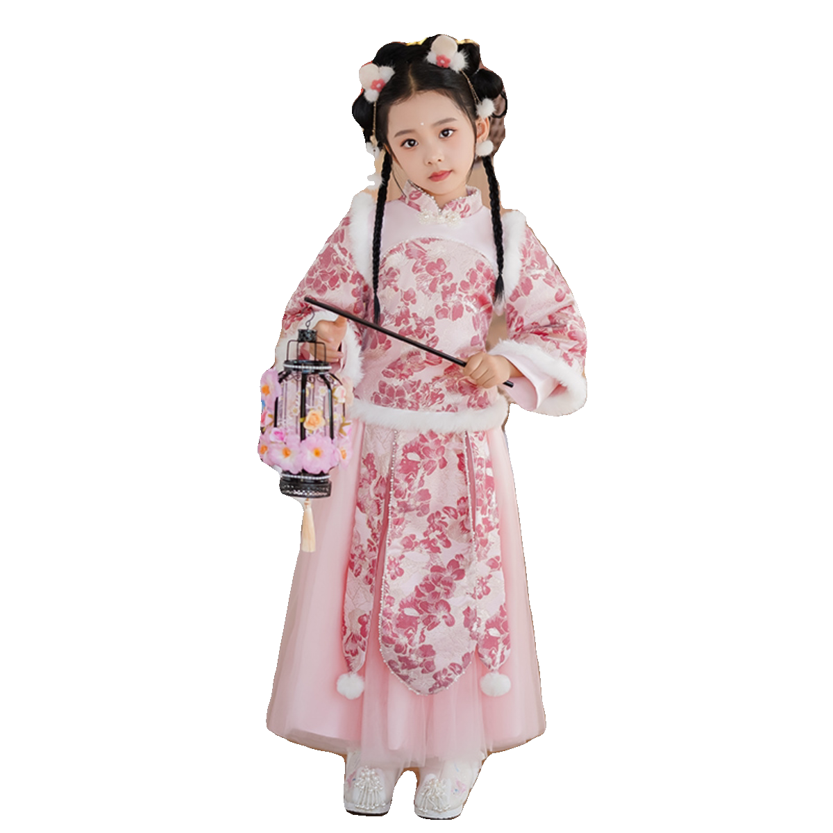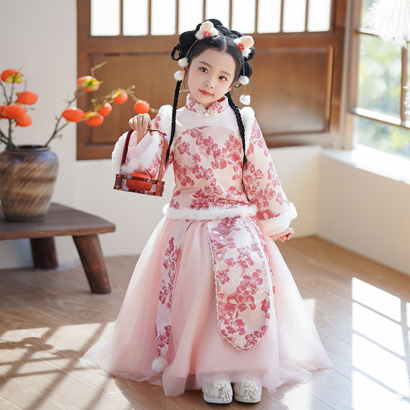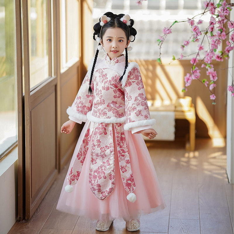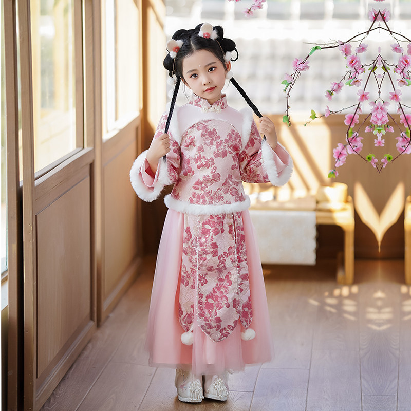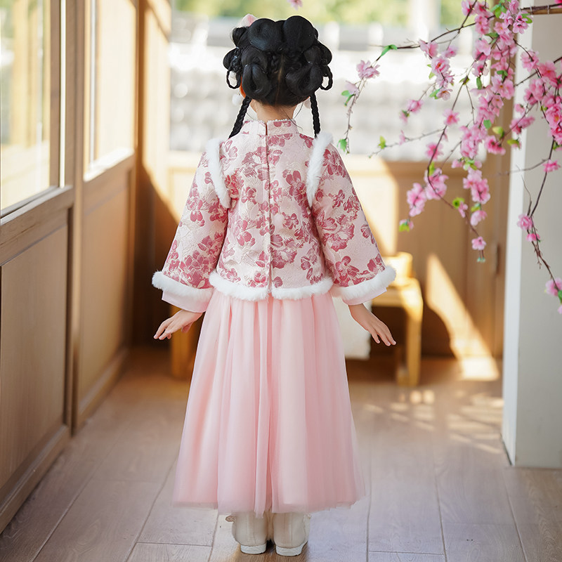 Зимнее ханьфу, детский розовый зимний комплект, увеличенная толщина, китайский стиль