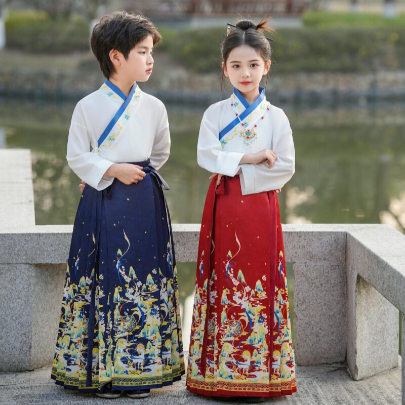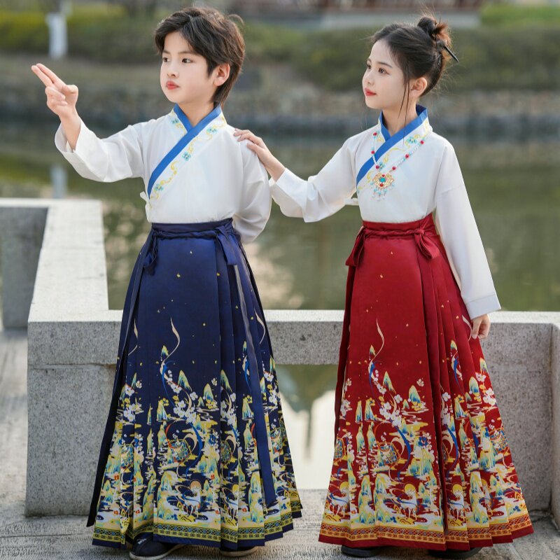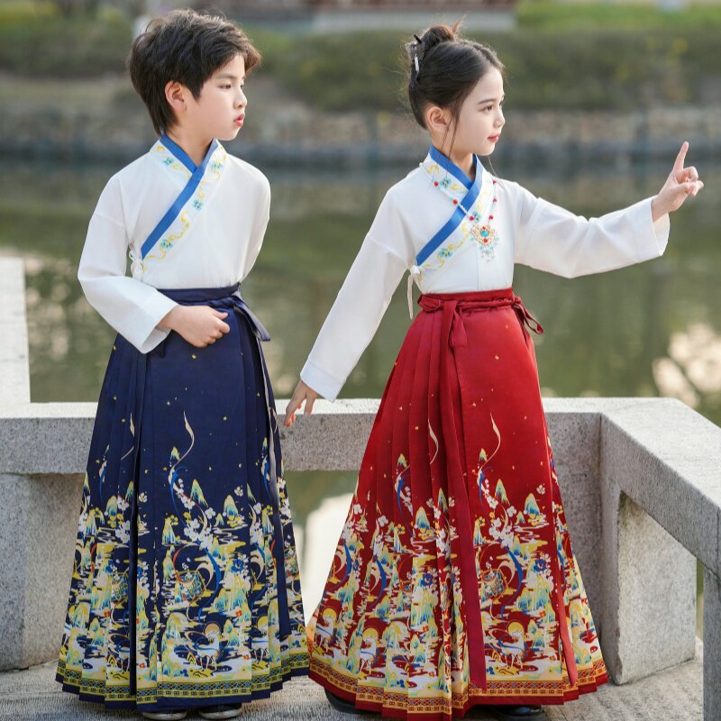 Детская юбка, ханьфу, костюм мальчика цветочника, комплект, подходит для подростков