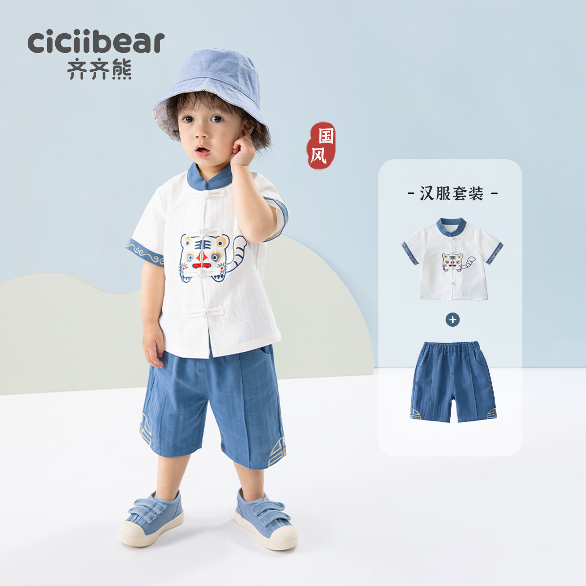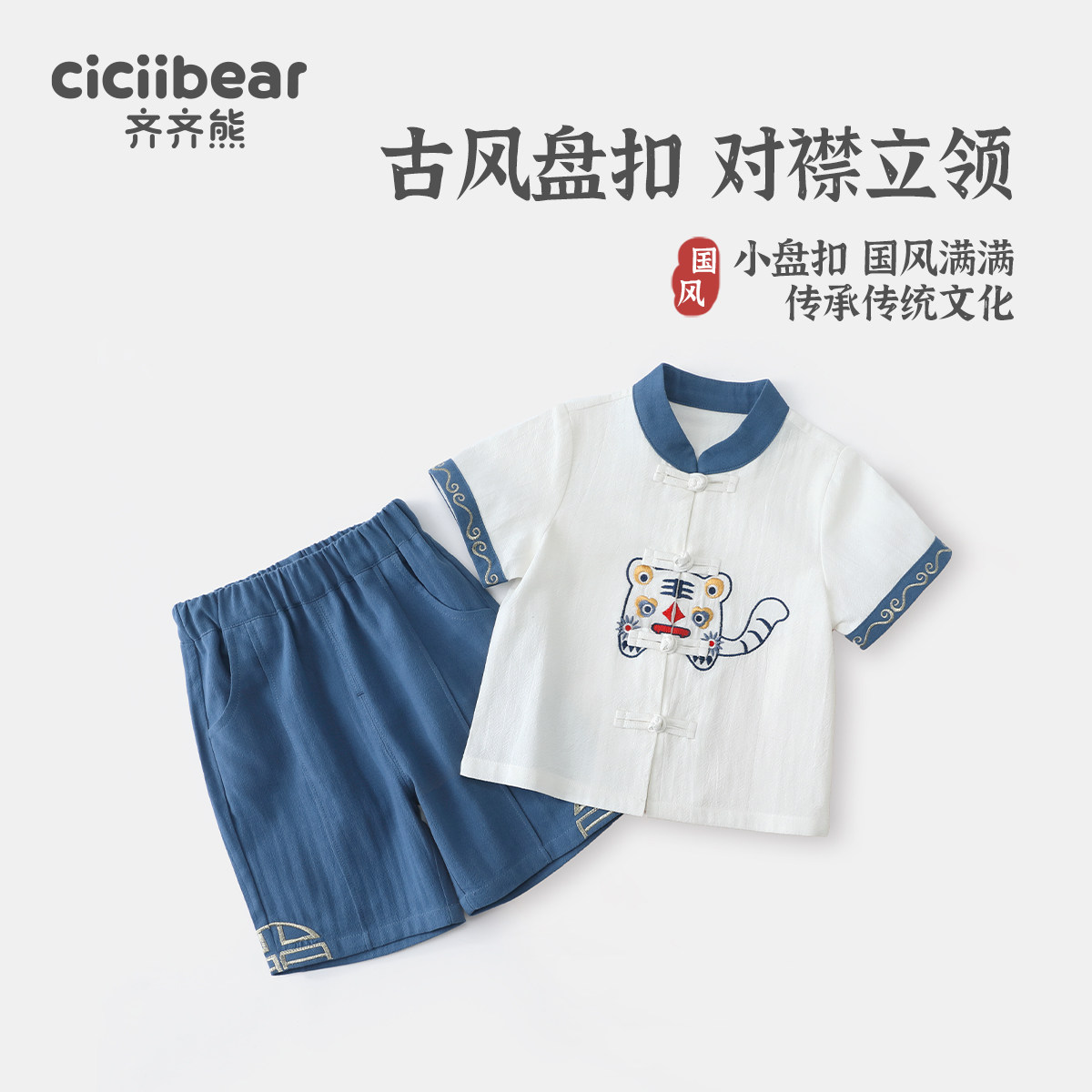 Ханьфу для мальчиков, хлопковый летний комплект, детский костюм, китайский стиль