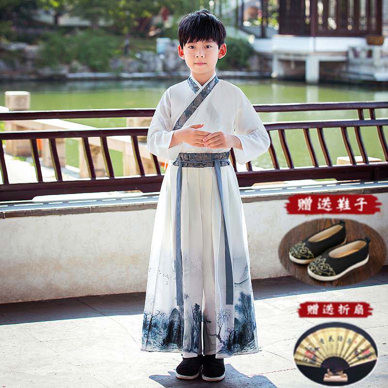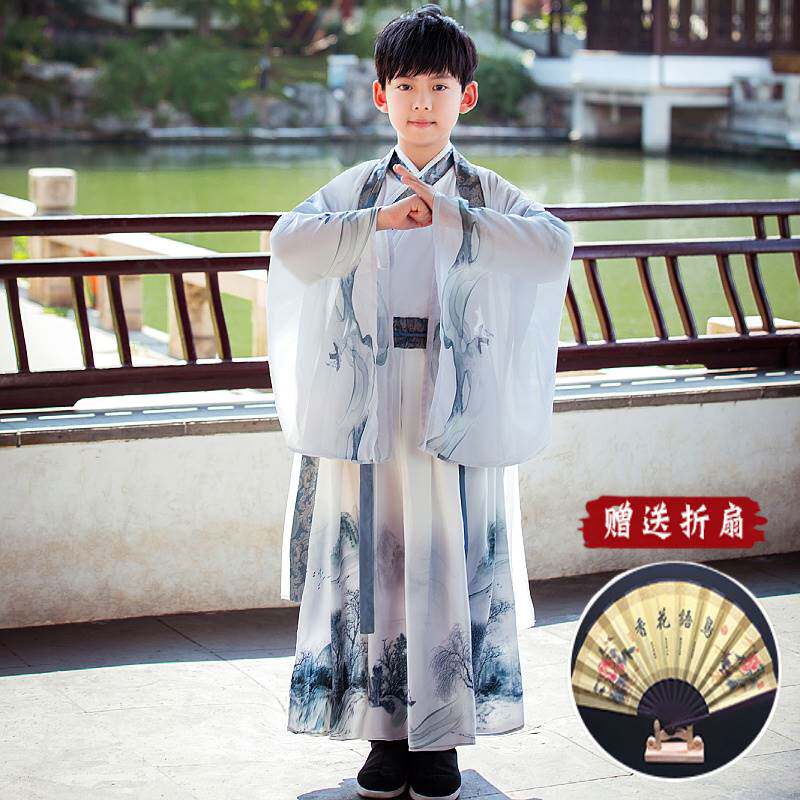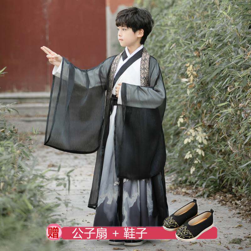 Детское ханьфу, накидка, плащ, шапка для мальчиков, демисезонная длинная утепленная куртка для выхода на улицу, китайский стиль