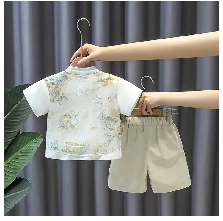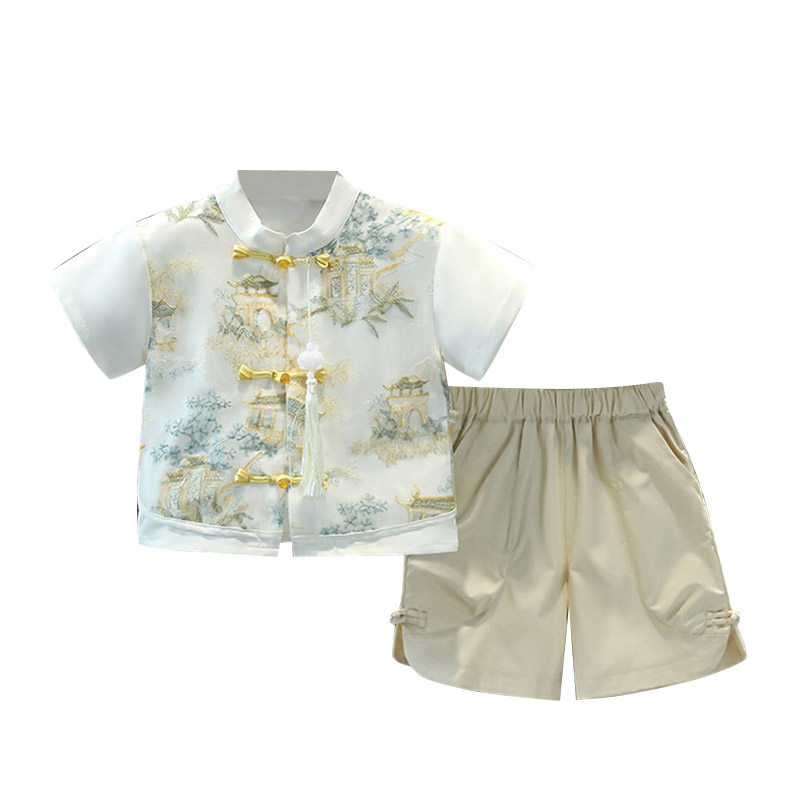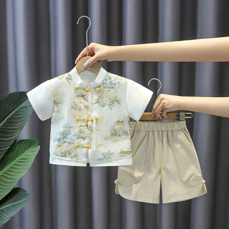 Летнее тонкое ханьфу для мальчиков, детский комплект, платье, одежда для мальчика, наряд на выход, китайский стиль