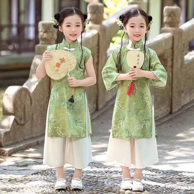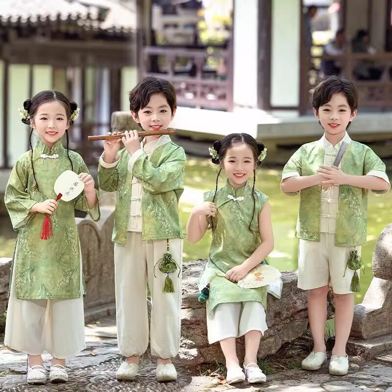 Детское ханьфу, костюм мальчика цветочника, летний комплект для школьников, ципао