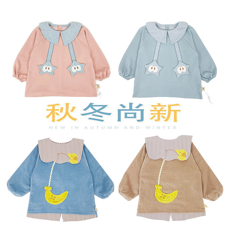 Демисезонный нагрудник, бархатный вельветовый лонгслив для еды, эластичный хлопковый детский комбинезон, 2019, сзади на завязках, анти-грязь