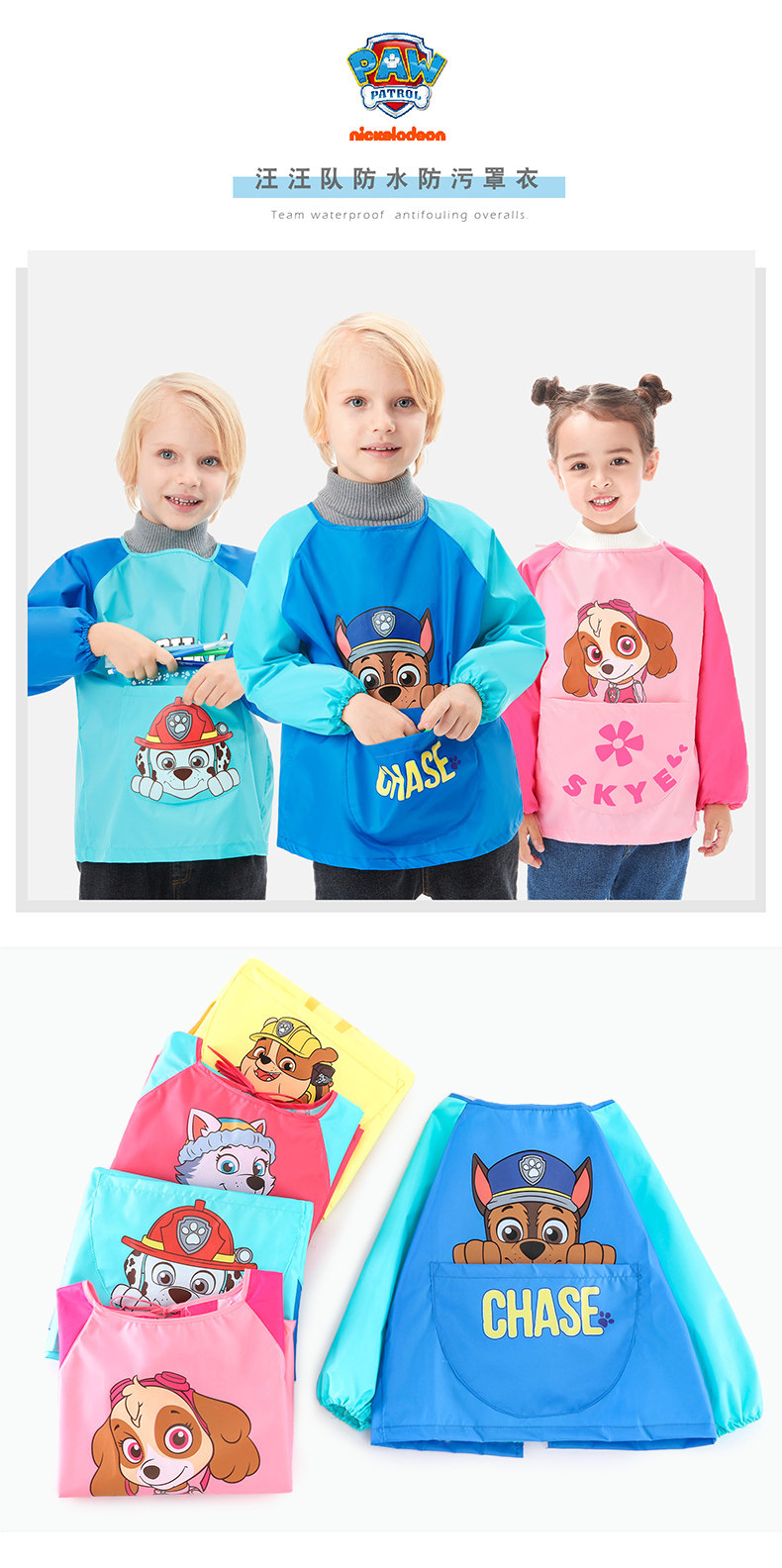 Детский нагрудник, водонепроницаемый фартук для мальчиков, лонгслив, сзади на завязках