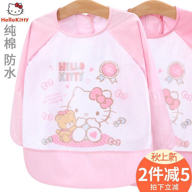 Hello kitty, детский нагрудник, осенний фартук для еды, водонепроницаемая дышащая юбка, с карманом, сзади на завязках