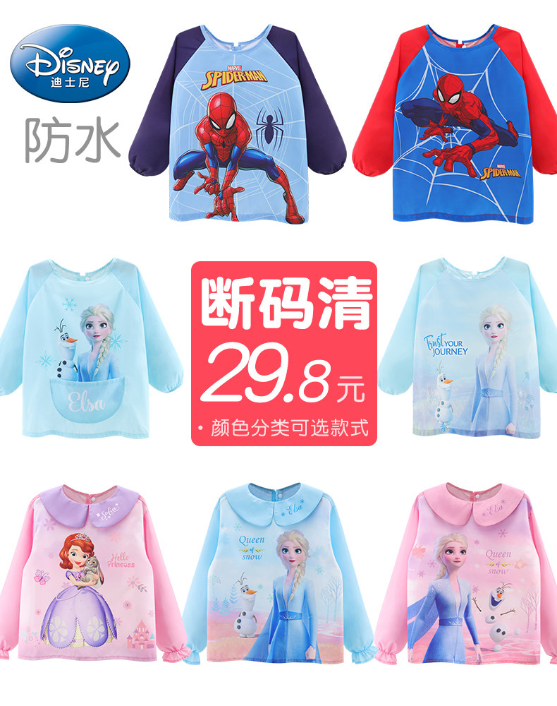 Дисней, детский водонепроницаемый нагрудник, юбка на девочку для еды для мальчиков, фартук для рисования для детского сада, сзади на завязках