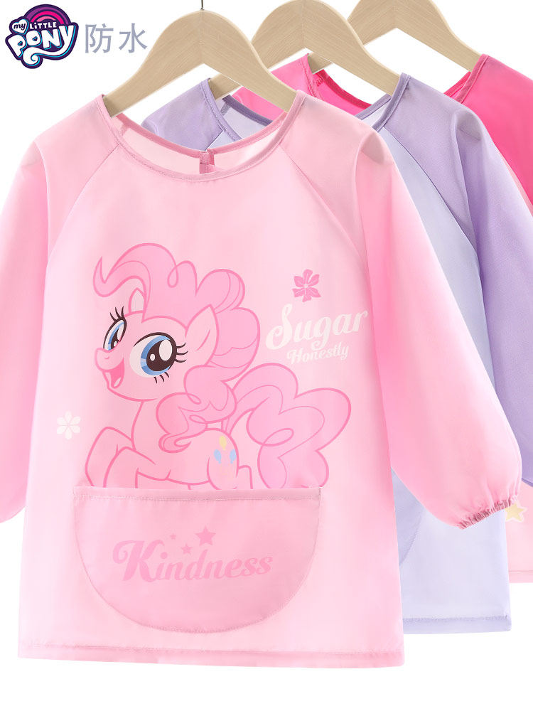 Пони, детский водонепроницаемый нагрудник, фартук для рисования, летняя юбка для еды, лонгслив, сзади на завязках