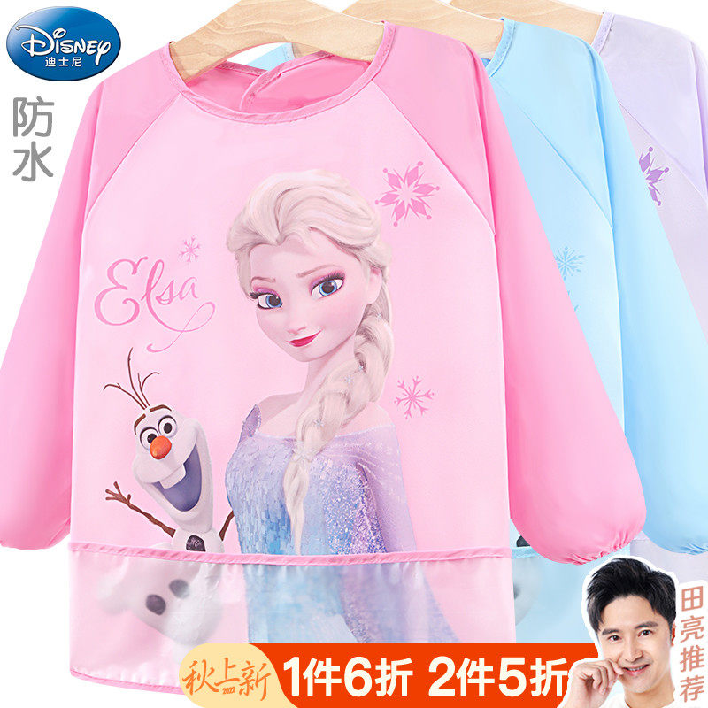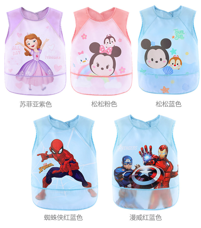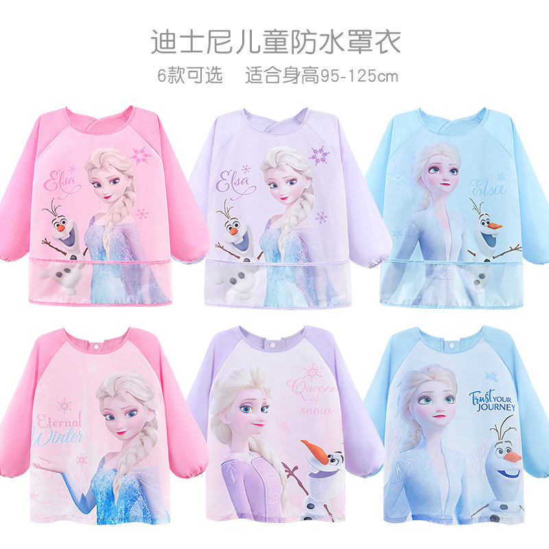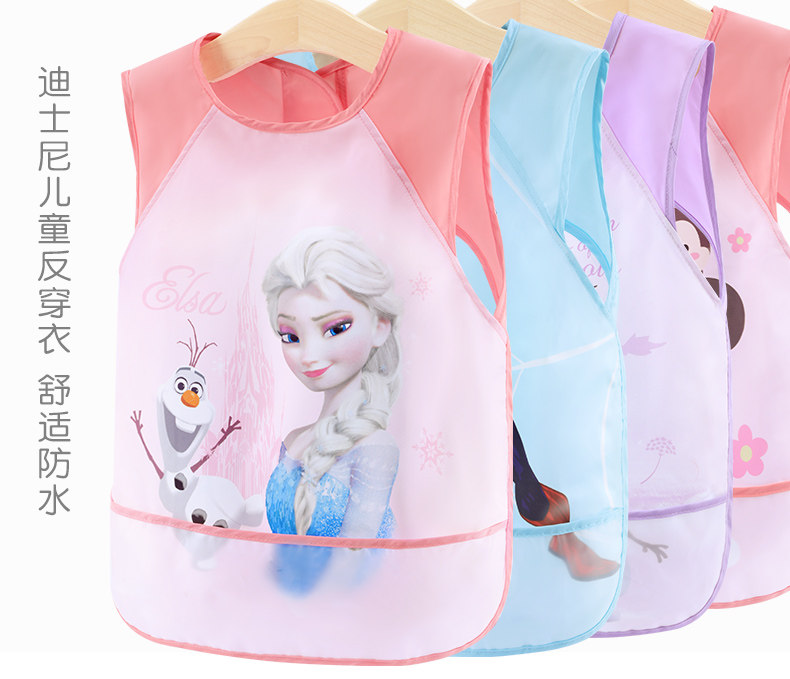 Дисней, детский нагрудник, демисезонный фартук для рисования, водонепроницаемая детская юбка для еды, с карманом, сзади на завязках