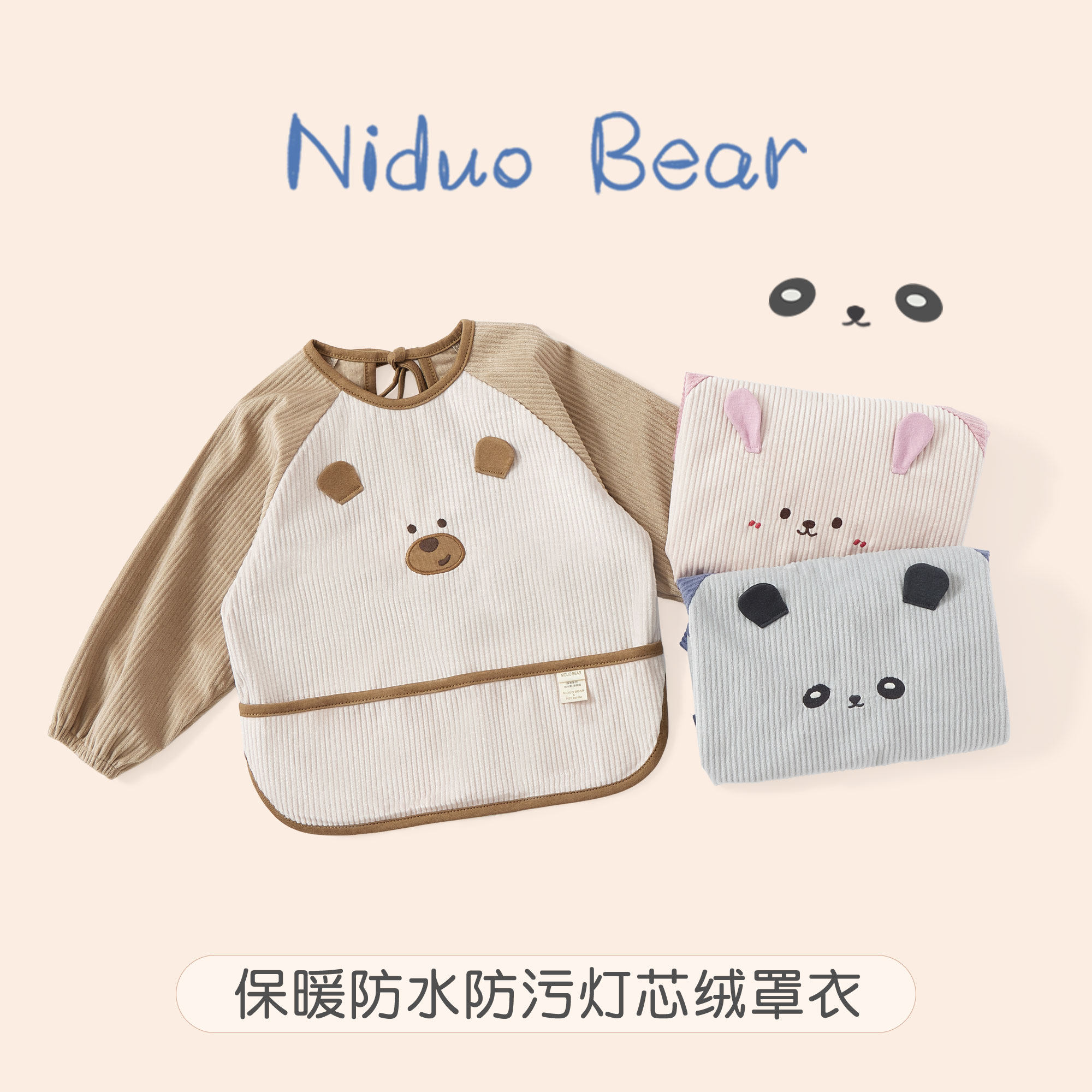 Детский вельветовый нагрудник для еды, водонепроницаемый фартук подходит для мужчин и женщин, демисезонное термобелье, анти-грязь, сзади на завязках