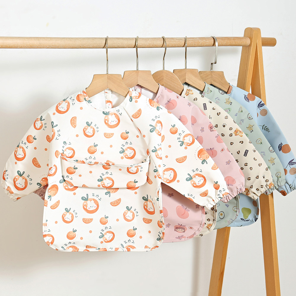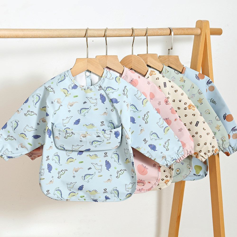 Детский полиуретановый лонгслив, водонепроницаемый нагрудник для еды, сзади на завязках, с карманом, анти-грязь