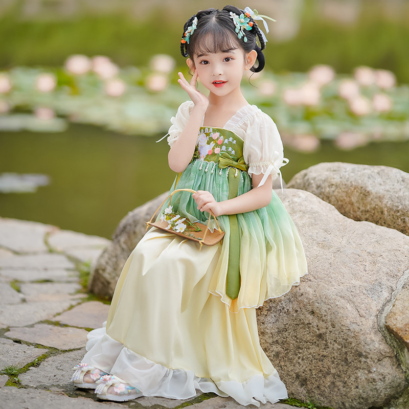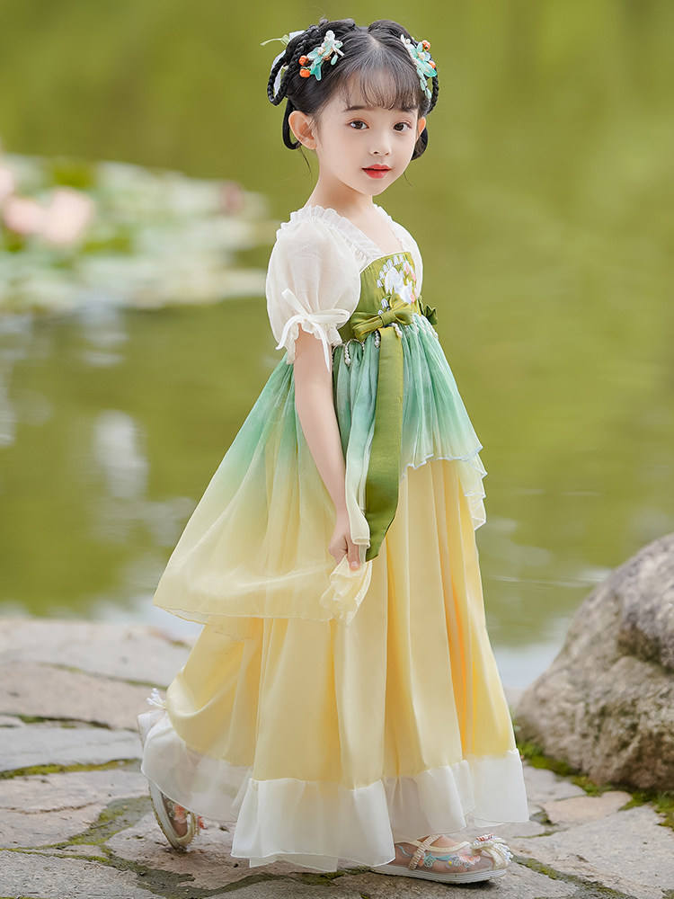 Ханьфу, детское летнее платье, юбка, короткий рукав, китайский стиль