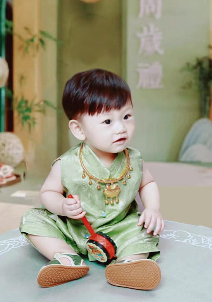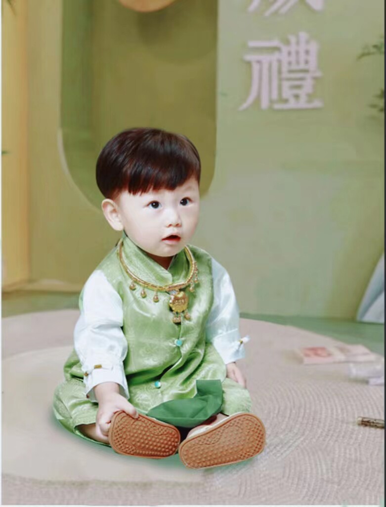 Платье, шелковая детская зеленая летняя одежда для мальчика, наряд на выход, китайский стиль, короткий рукав