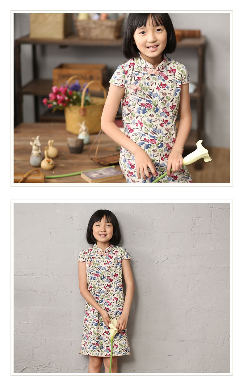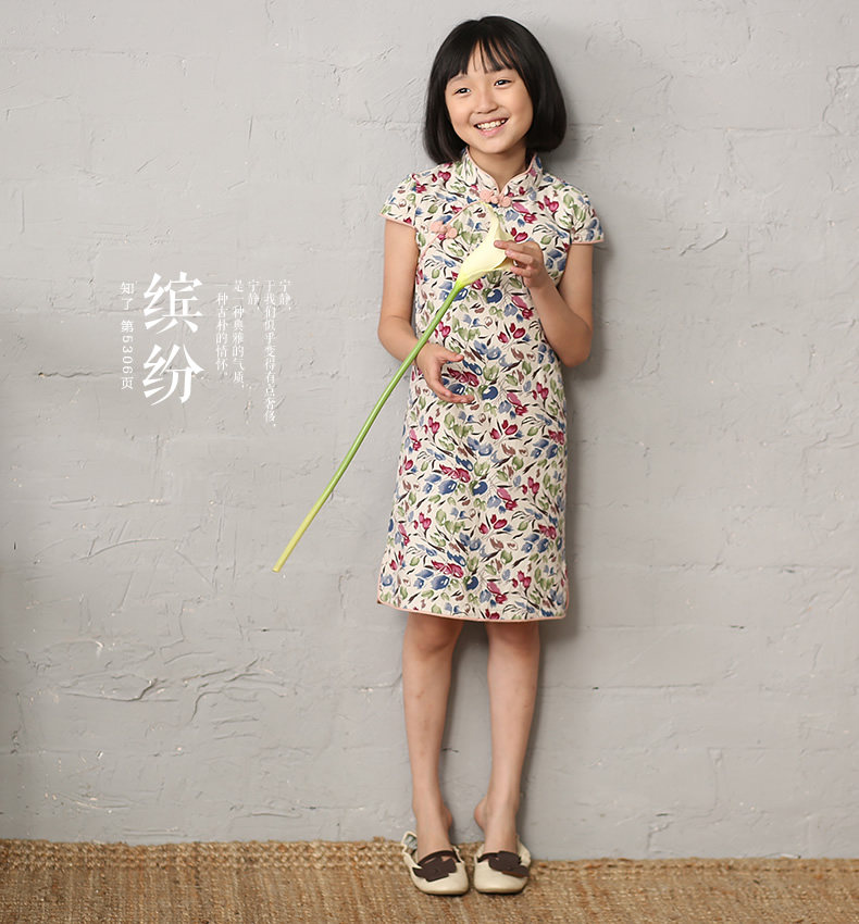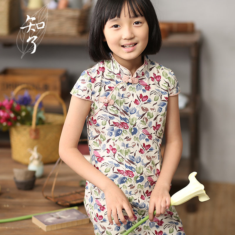 知了 Ципао, платье с коротким рукавом, юбка, детская одежда, китайский стиль, подходит для подростков