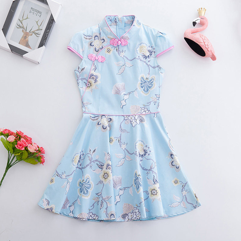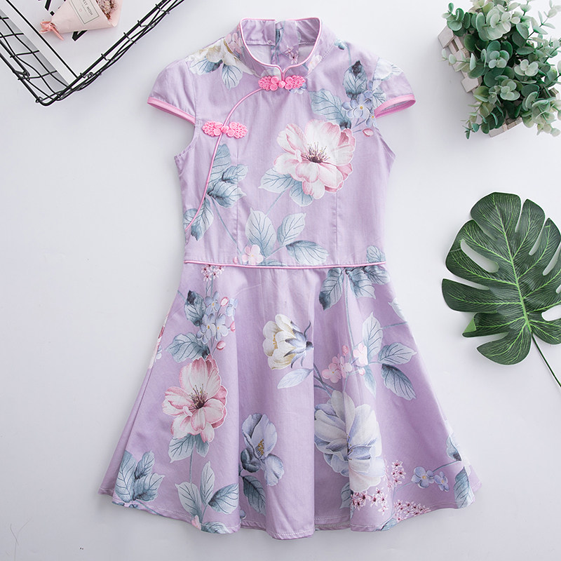 Детское летнее ципао, хлопковый костюм для девочек, наряд маленькой принцессы