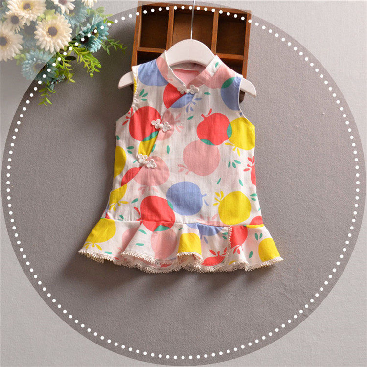 Apple, детское летнее ципао, хлопковый наряд маленькой принцессы для девочек для раннего возраста, 2020, китайский стиль