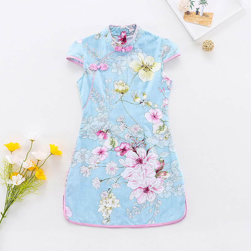 Детское летнее ципао, хлопковое платье, детская одежда, подходит для подростков, китайский стиль
