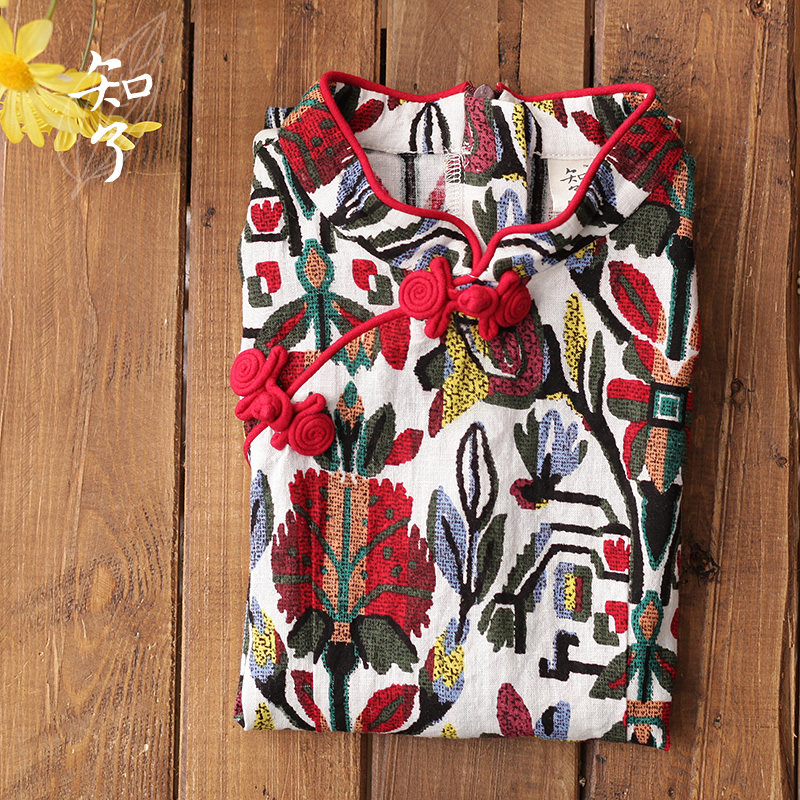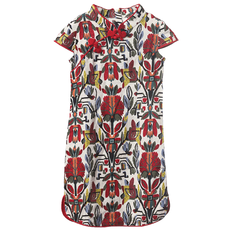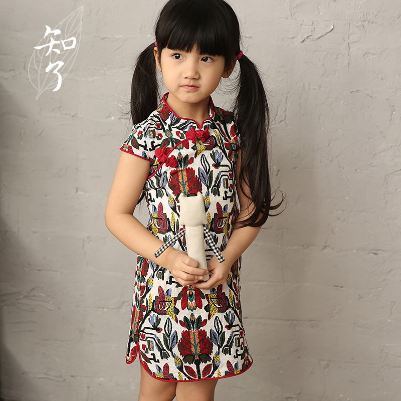 知了 Летняя одежда, ретро ципао, платье с коротким рукавом, детская одежда, китайский стиль