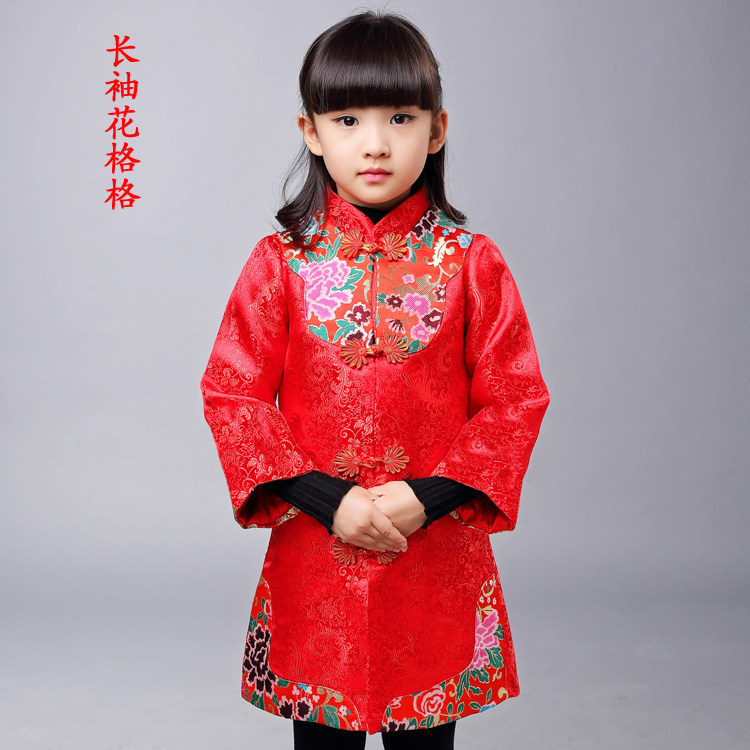 Стеганое ципао, демисезонный детский пуховик, юбка, красный лонгслив для принцессы, костюм, китайский стиль
