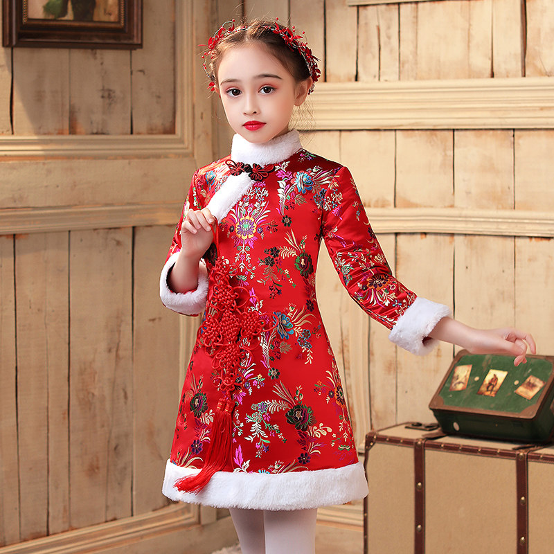 Детское ципао, утепленная юбка на девочку, ханьфу, китайский стиль