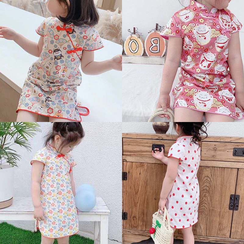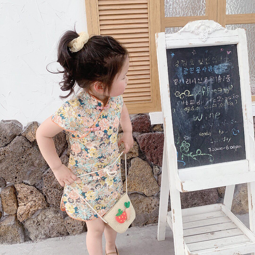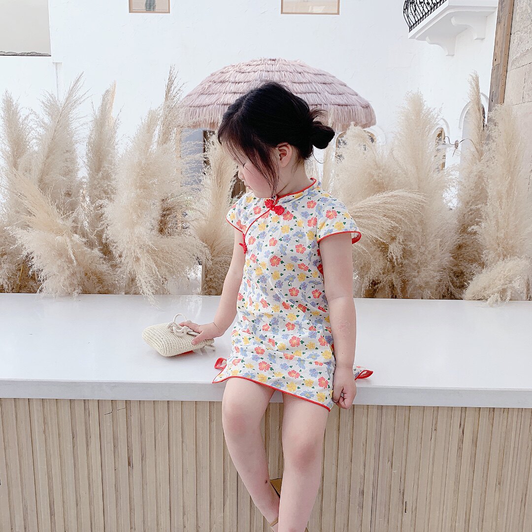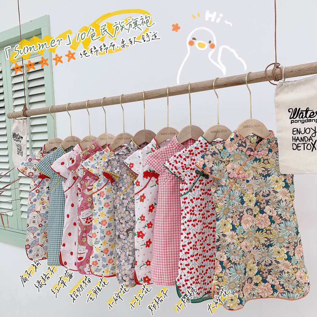 Ципао, летнее платье, юбка на девочку без рукавов, из хлопка и льна, в западном стиле