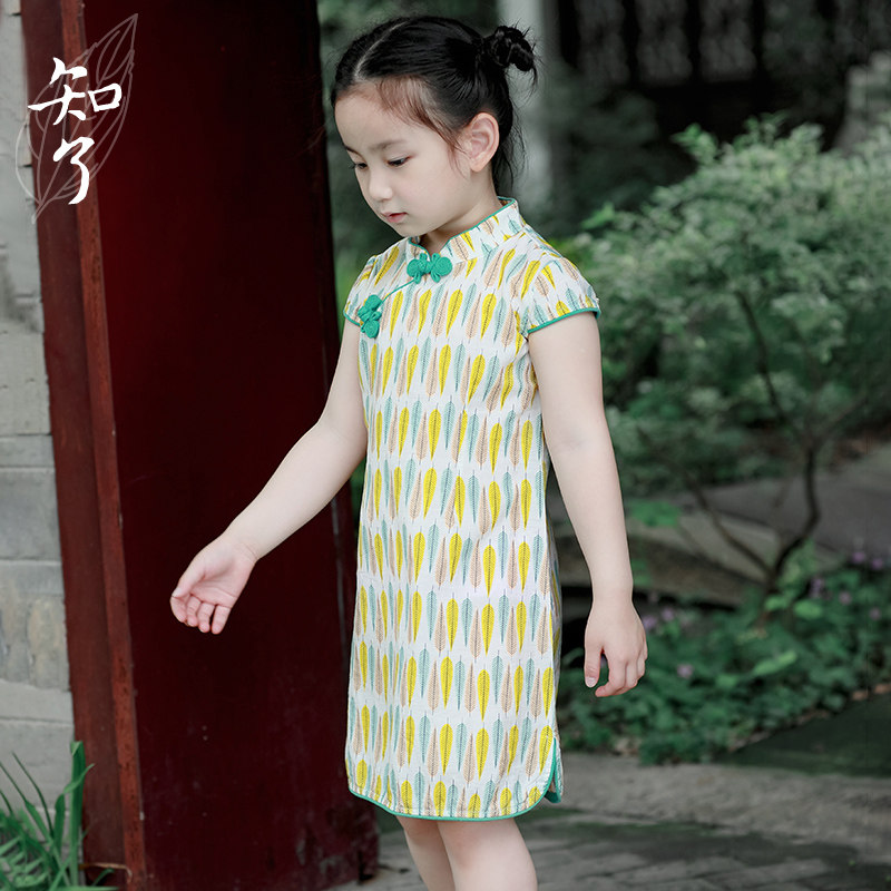知了 Летнее платье, детское ципао, детская одежда, подходит для подростков, короткий рукав, в цветочек