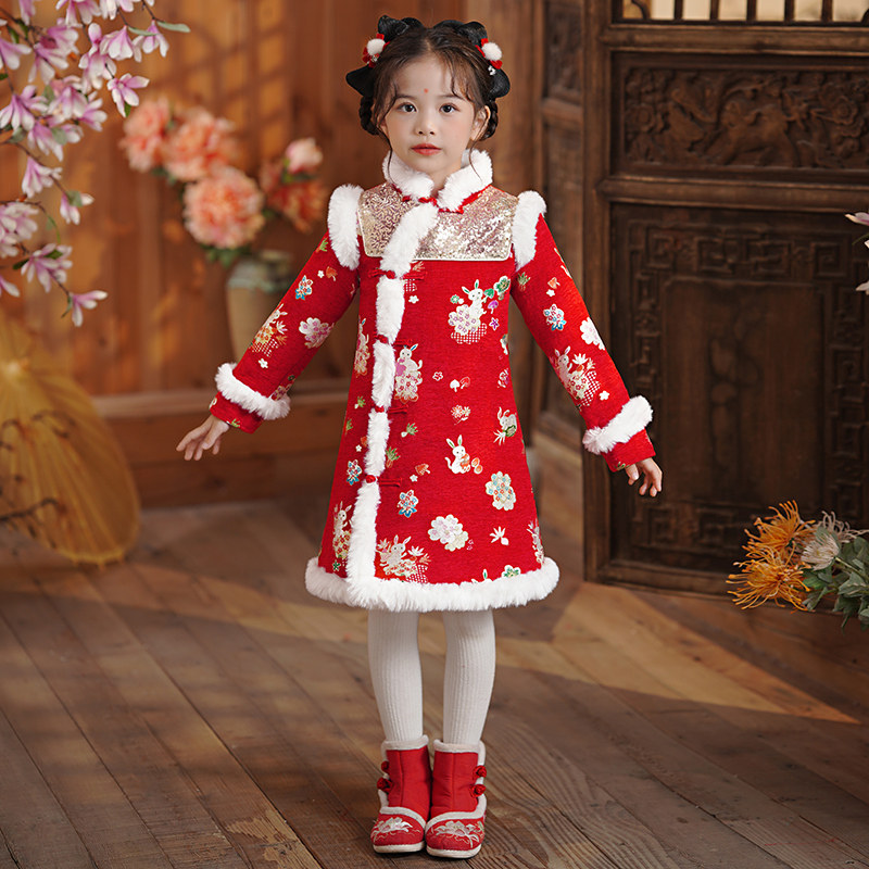 Демисезонное ципао, пуховик, детское утепленное ханьфу, китайский стиль