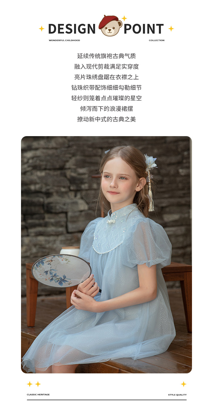 Летнее милое ципао, платье, детская одежда, китайский стиль