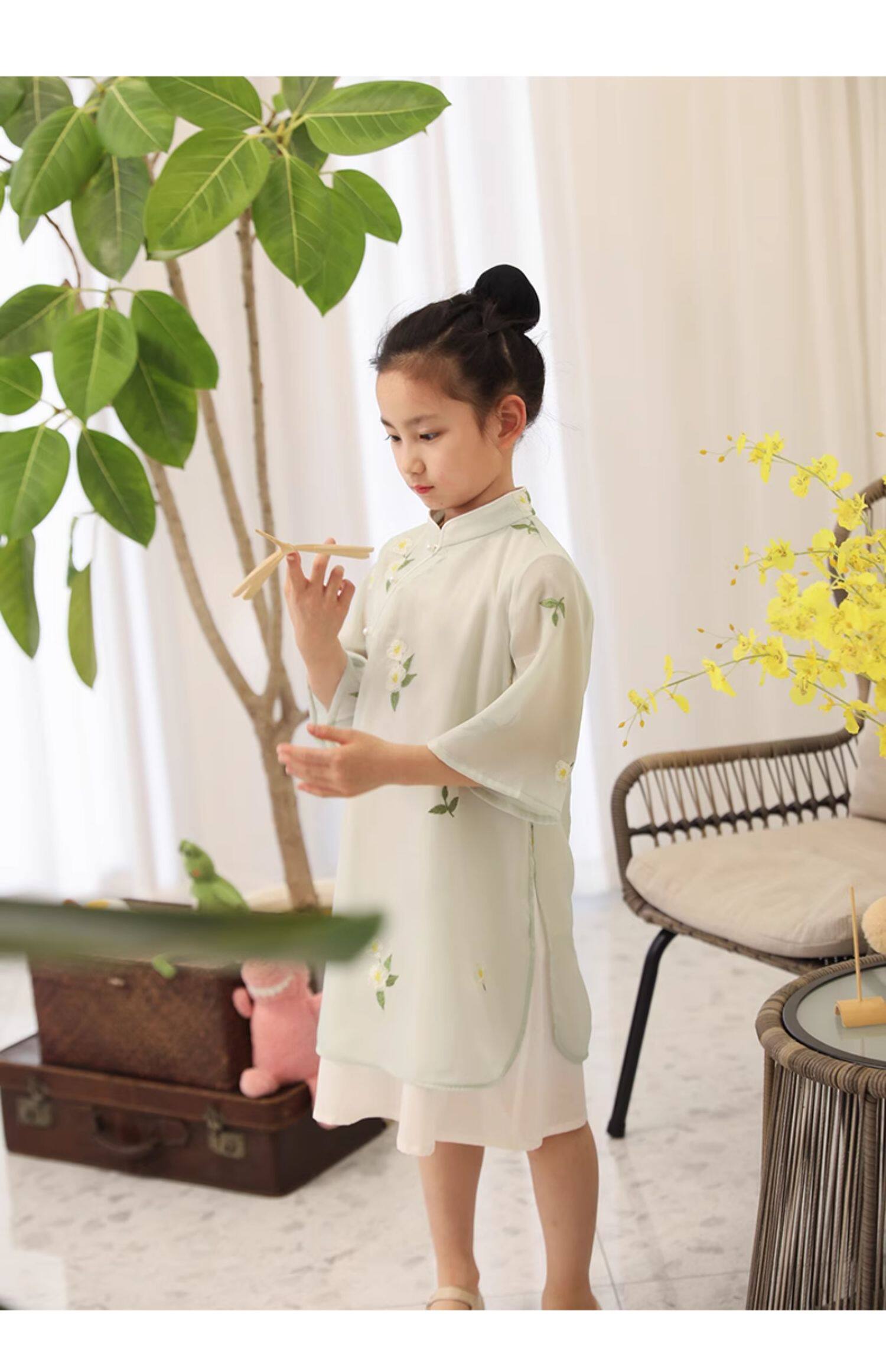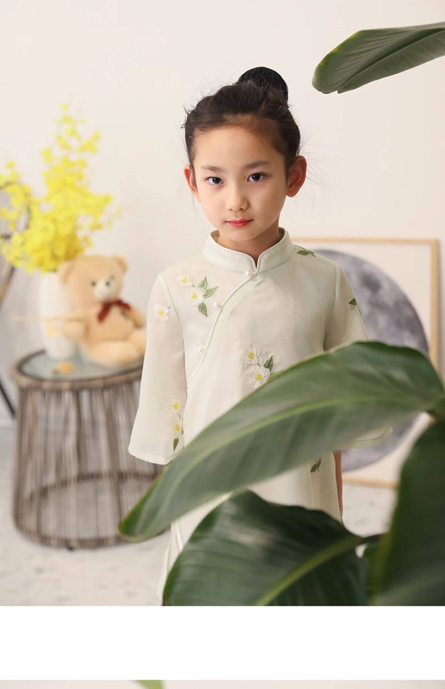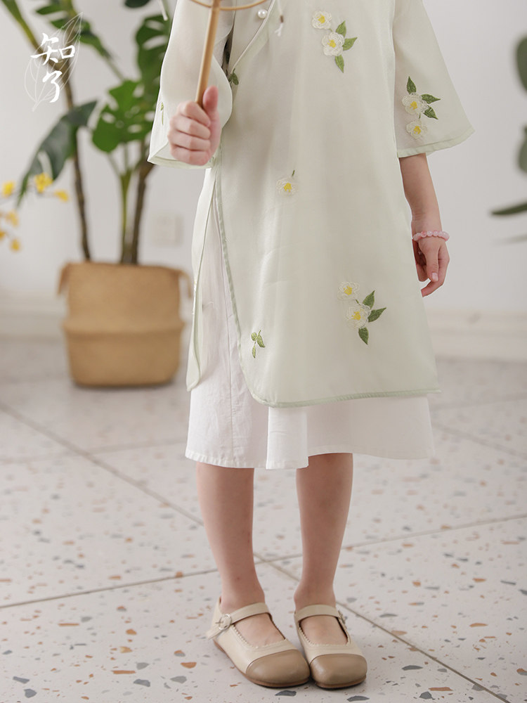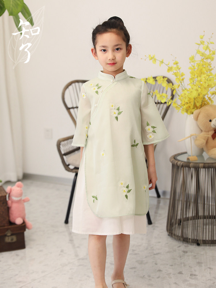 Китайский мегафон, платье с рукавами, ципао, летняя одежда, детская одежда, китайский стиль, с вышивкой