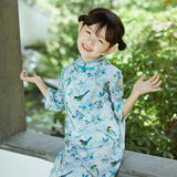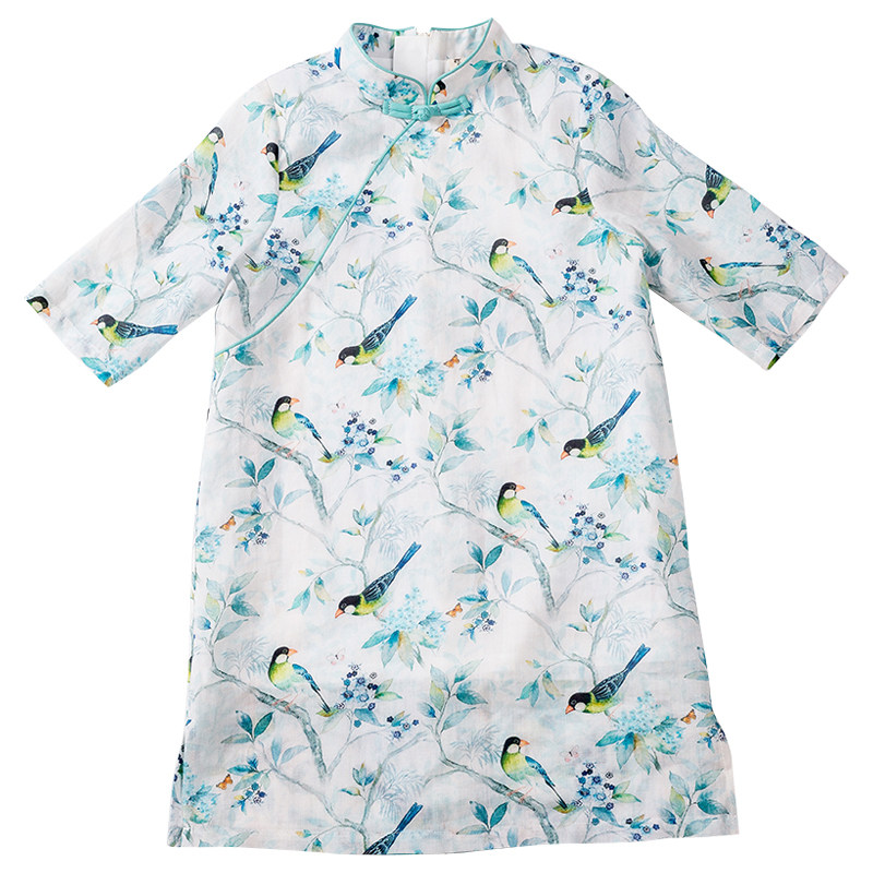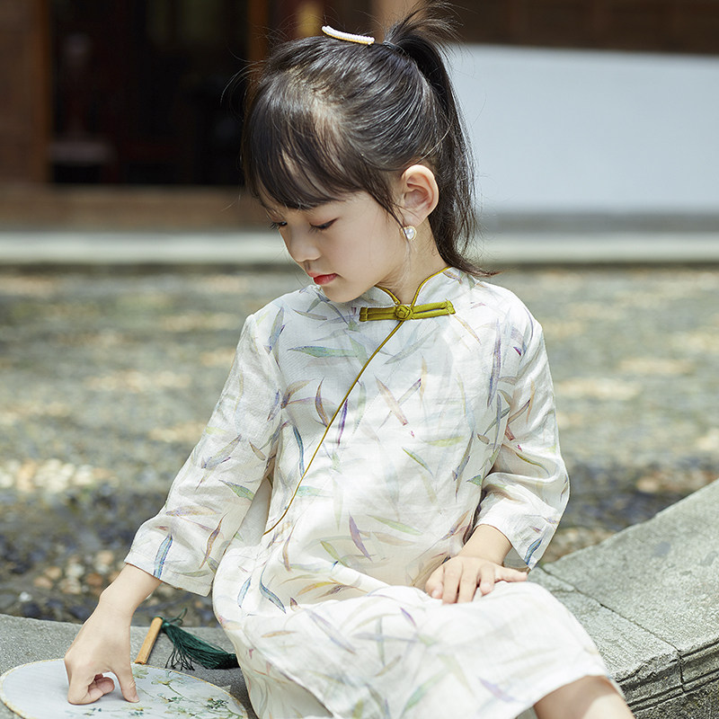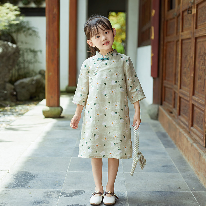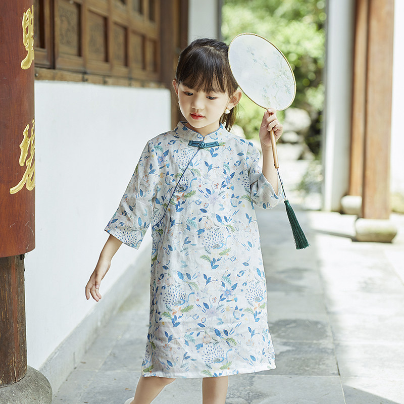 Осеннее ципао, детский ретро лонгслив, детская одежда, из хлопка и льна