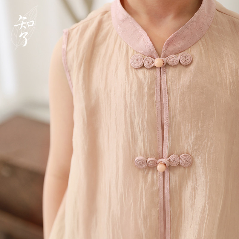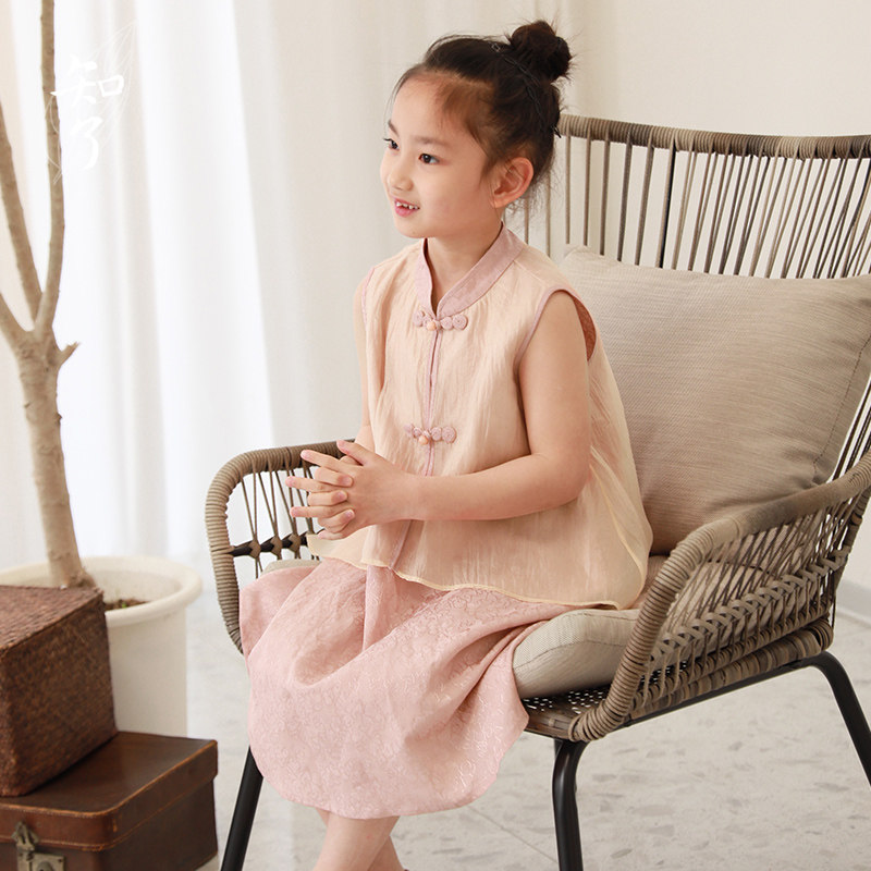 知了 Летнее ретро ципао, наряд маленькой принцессы, платье с коротким рукавом, юбка на девочку, детская одежда, китайский стиль
