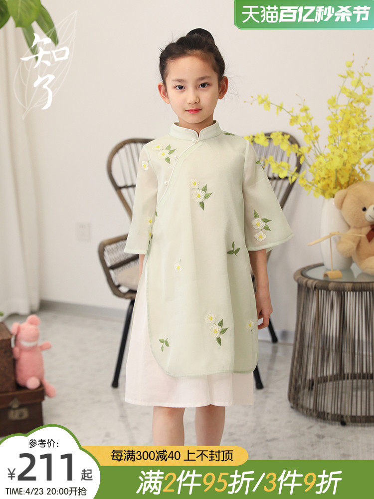 知了 Мегафон, платье с рукавами, ципао, летняя одежда, детская одежда, китайский стиль, свободный крой