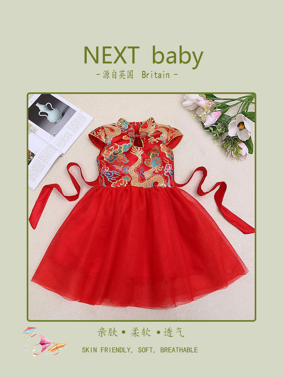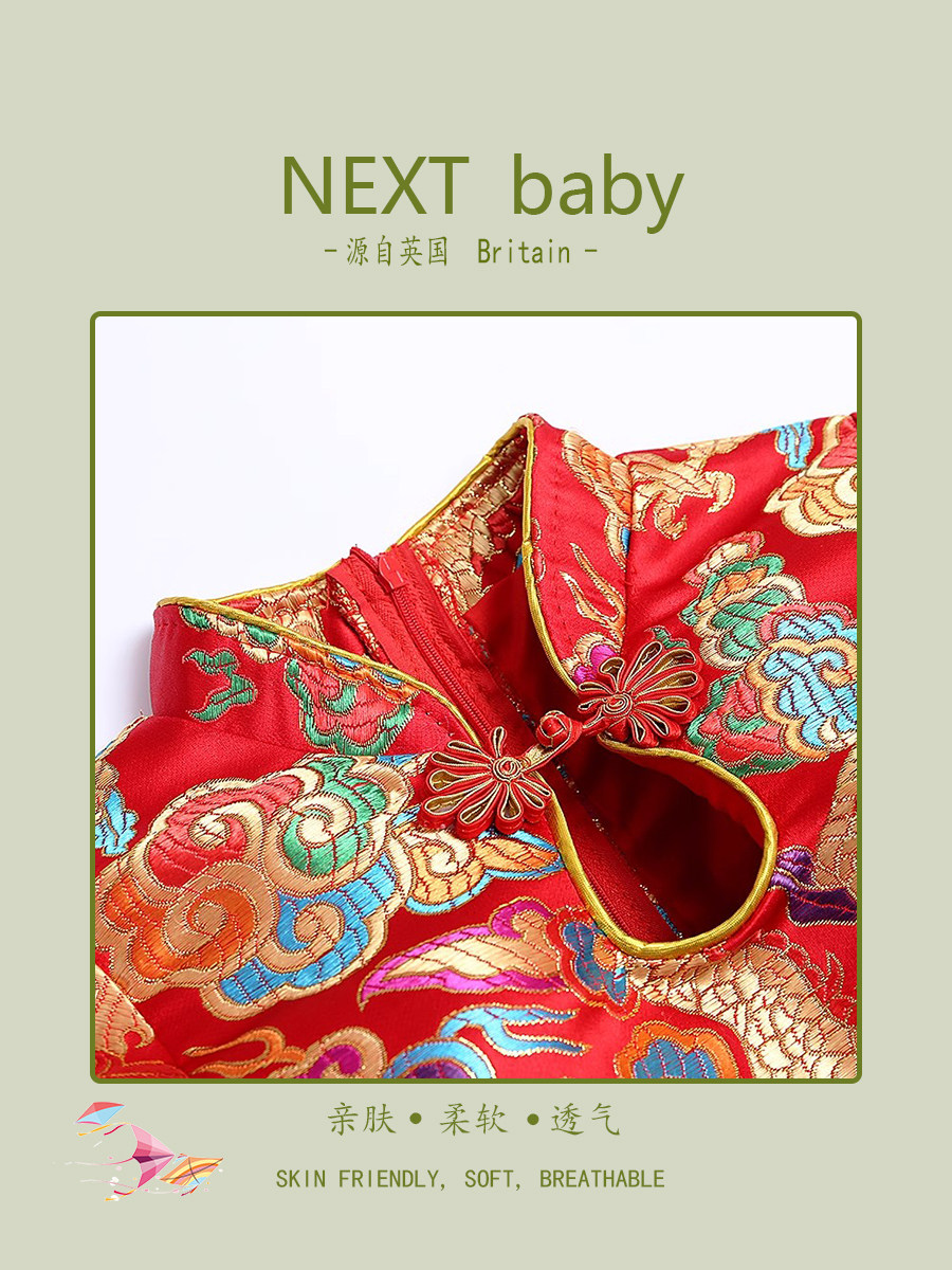 Чистая малышка Red Fairy x Детский хороший Cheongsam китайский кранов ретро -ретро -малышка Jzs Платье дня, чтобы поймать Чжоу Хан