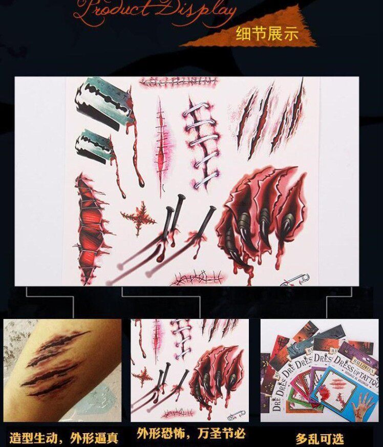 Бровь -Сердечная наклейка татуировка наклейка Хэллоуин Ужасная водонепроницаем
