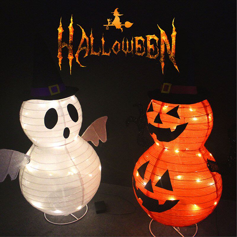 Быстросъемный реквизит для Хэллоуина, светящиеся украшения-фонарики из тыквы, белые фонари-призраки, креативные декоративные принадлежности, атмосферный макет сцены