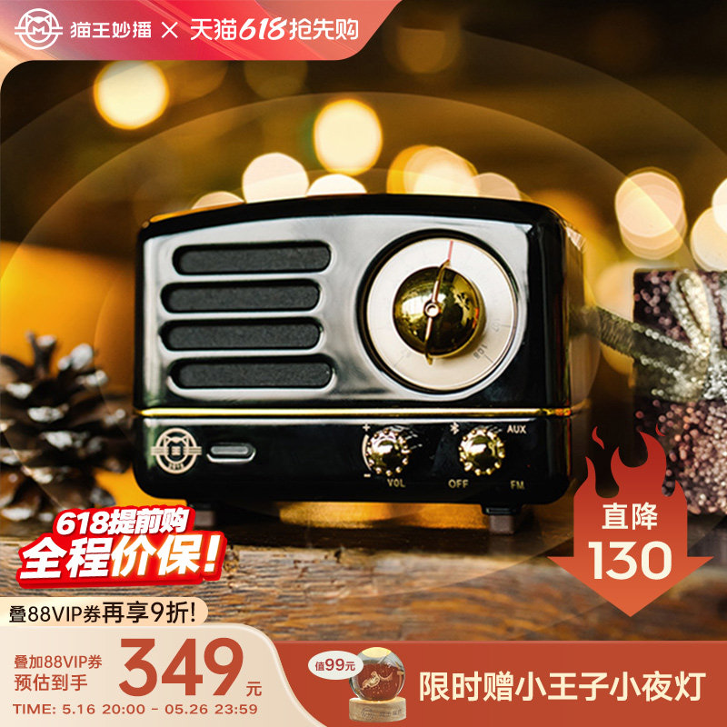 猫王音响 Little Prince Radio OTR Black Retro Wireless Bluetooth Speaker Bararic 520 Подарки